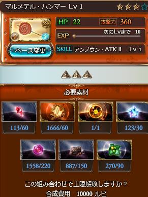 ①UNK武器3本3凸+最終上限開放(交換+上限開放素材集めでやばい)②石2種ゲット(武器に同じくやばい)③ダマスカス(武器と召喚石の所為で本気でやばい)でした。うん、本当にガンバッタヨ。